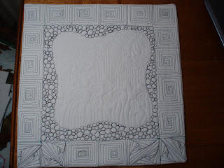 The quilting I have used in these are all Zentangle patterns that I use in my drawing.   I love the "organic" feel to these little quilts and I think they would make fantastic placemats if you could bear to use them for that.   These ones are a little small though at 8x8inches.